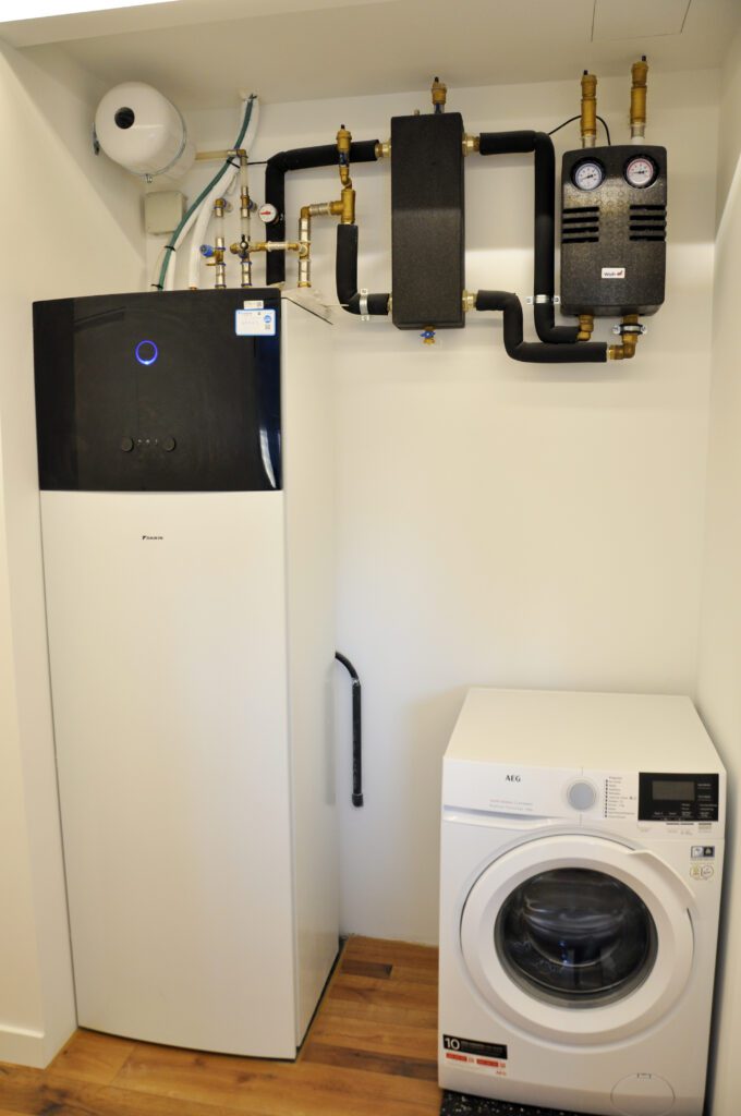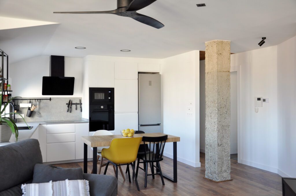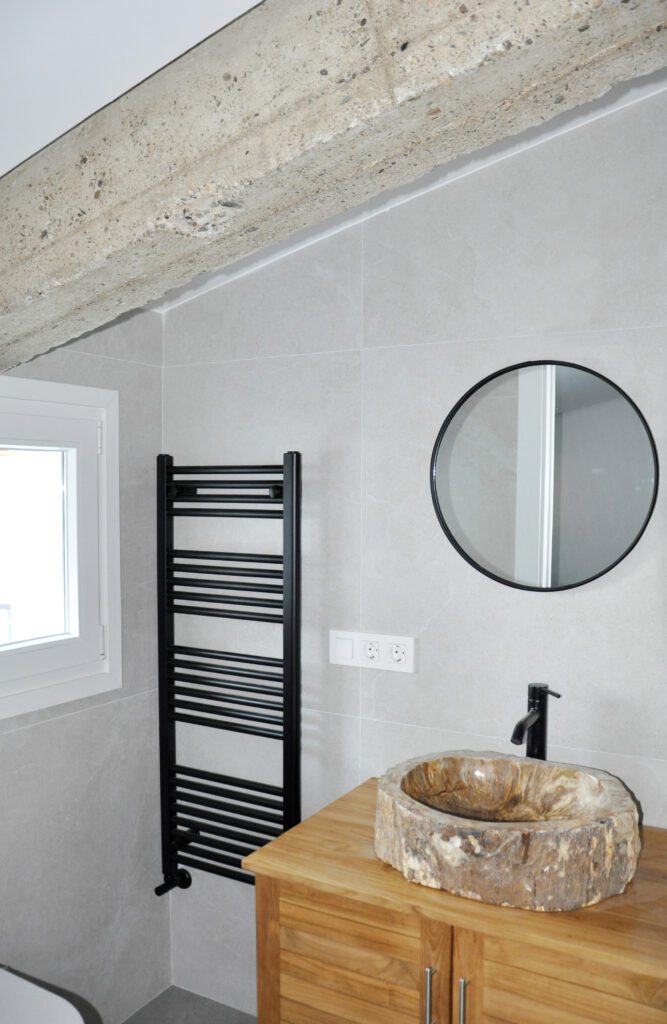 En esta reforma no solo se han adecuado los espacios a los nuevos propietarios tratando de buscar estancias mas amplias y luminosas, sino que además se ha apostado por una mejora energética de la misma. Hemos sustituido la caldera de condensación con radiadores por un sistema de aerotermia con suelo radiante, se han aislado todas las paredes y techos y hemos sustituido las carpinterías. Se ha apostado por obtener la mejor eficiencia energética en la vivienda.